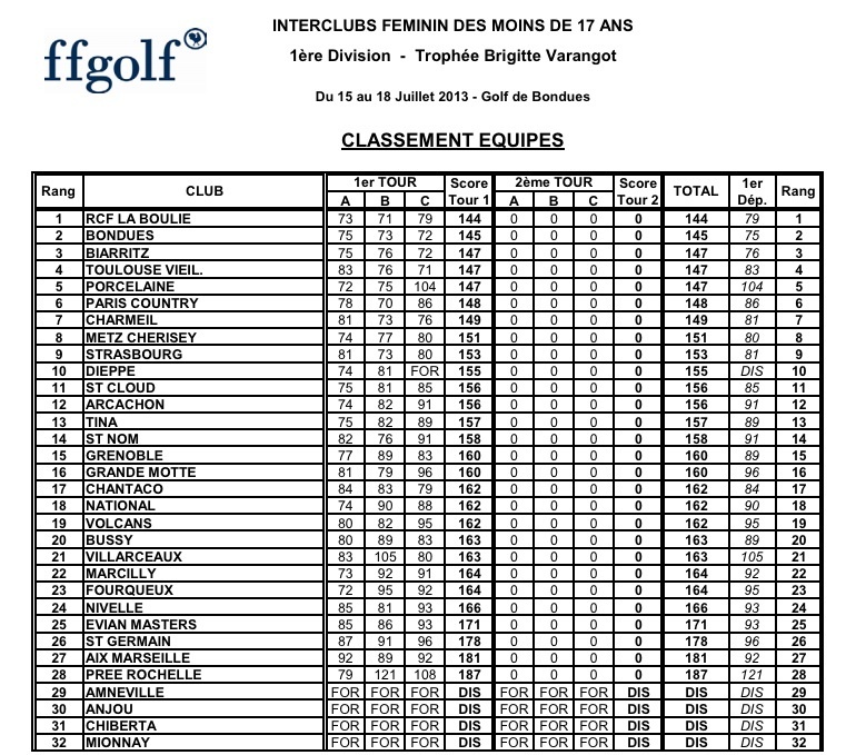 C'est parti, un premier tour sur les chapeaux de roues, avec Ophélie à +6 et Emma à +8, notre équipe se place dans la première partie du tableau, à suivre...