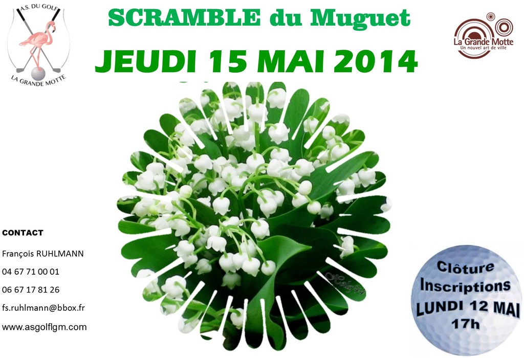 L’AS du Golf de la Grande Motte vous propose une rencontre mensuelle amicale sous forme de scramble à 3 ou à 4 (en fonction du nombre de participants). Inscription : sur le panneau de l’AS ou par courriel à : fs.ruhlmann@bbox.fr Clôture inscription : Lundi 12 MAI 17h Droit de jeu : 5€ ( à régler au départ du tee 1) Premier départ : 10h 10 (votre heure de départ vous sera communiquée la veille par mail) Proclamation des résultats à l’issue de l’épreuve au club house. Nous vous attendons nombreux. |