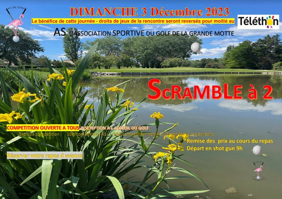 Venez tous nombreux à cette compétition de l'AS en formule scramble à 2, d'autant que c'est pour la bonne cause la moitié des droits de jeu étant reversée au Téléthon 2023.